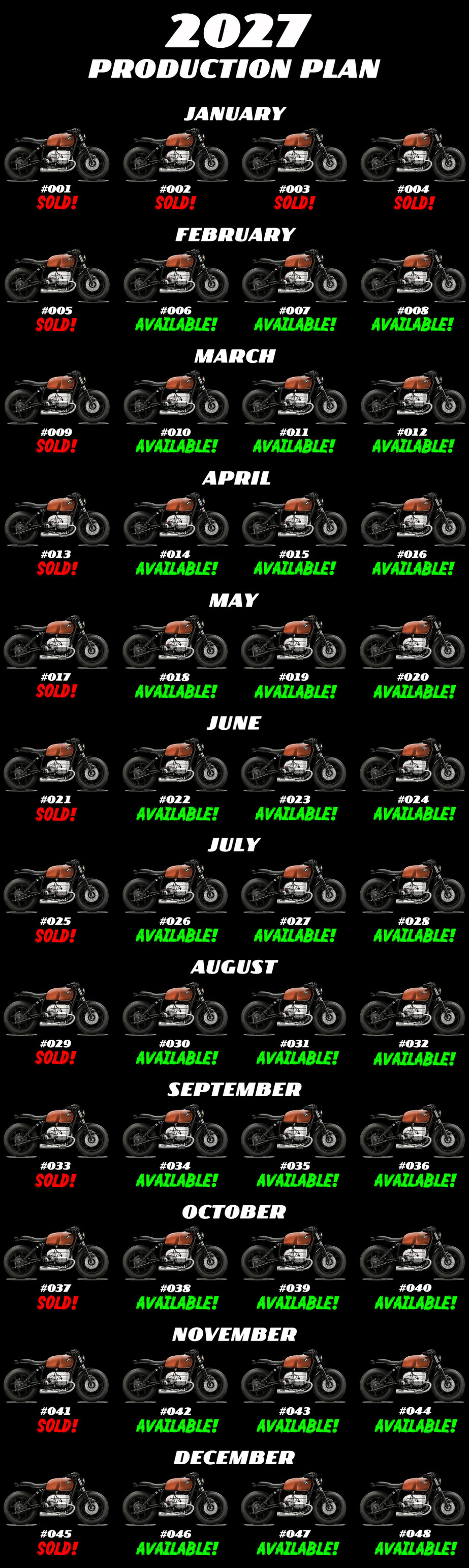 The first bikes of each month in 2027 are already reserved for our Swiss Distributor "WalzWerk Motorcycles Switzerland".